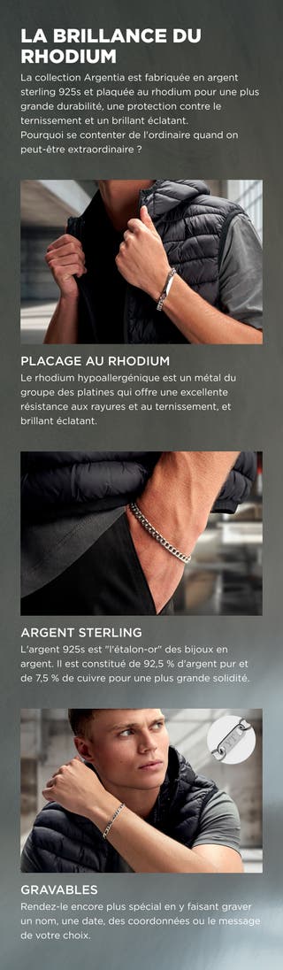 Argentia | 925s | Bracelet à chaîne en argent sterling plaqué rhodium de 4 mm