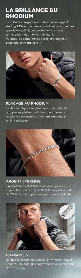 Argentia | 925s | Bracelet à chaîne en argent sterling plaqué rhodium de 4 mm