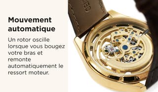 Les montres automatiques, également appelées montres à remontage automatique, possèdent un mouvement mécanique qui se remonte tout seul lorsque vous bougez votre poignet.