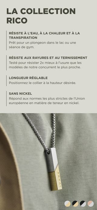 Collier Rico à pendentif noir et doré Collier Rico à pendentif argenté et doré Collier Rico à pendentif noir et argentéCollier Rico à pendentif couleur or rose et argent