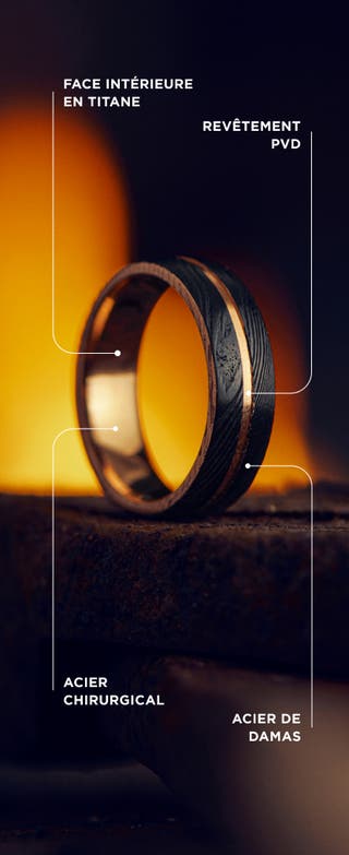Choisissez la couleur - Fortis | Bague en acier Damas et titane de couleur noire à double liseré argenté - 7 mm
