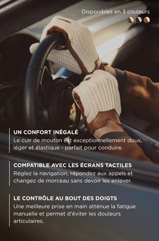 Choisissez la couleur - Gants de conduite en cuir de mouton brun havane et ivoire pour écrans tactiles