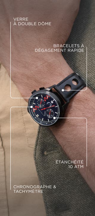 Chronométrez vos concurrents et calculez votre vitesse avec le combiné chronographe et tachymètre de la Monterey.