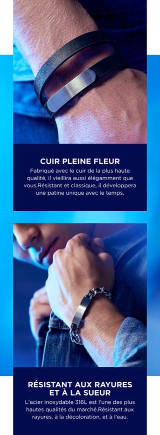 Choisissez la couleur - Nomen | Bracelet chaîne en métal argenté et en cuir avec plaque d'identification