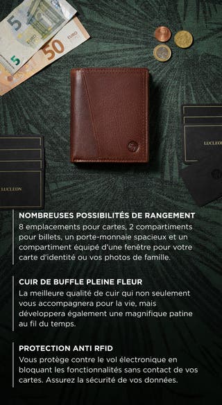 - Peut contenir jusqu'à 20 cartes, espèces et reçus